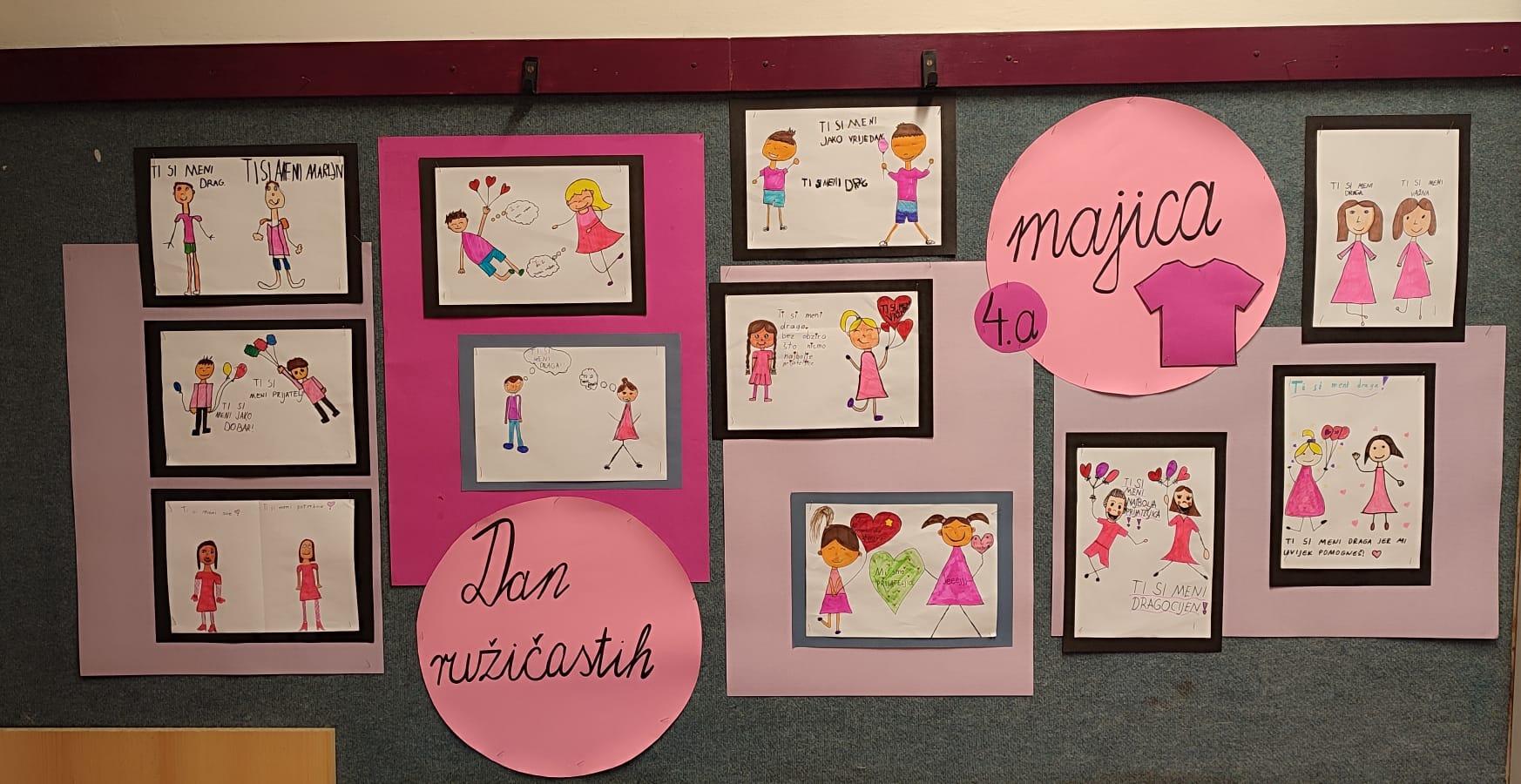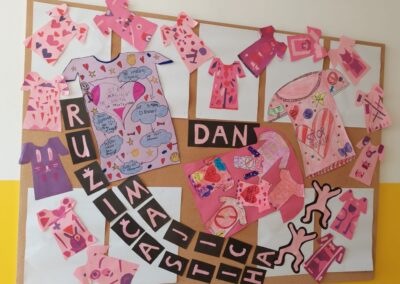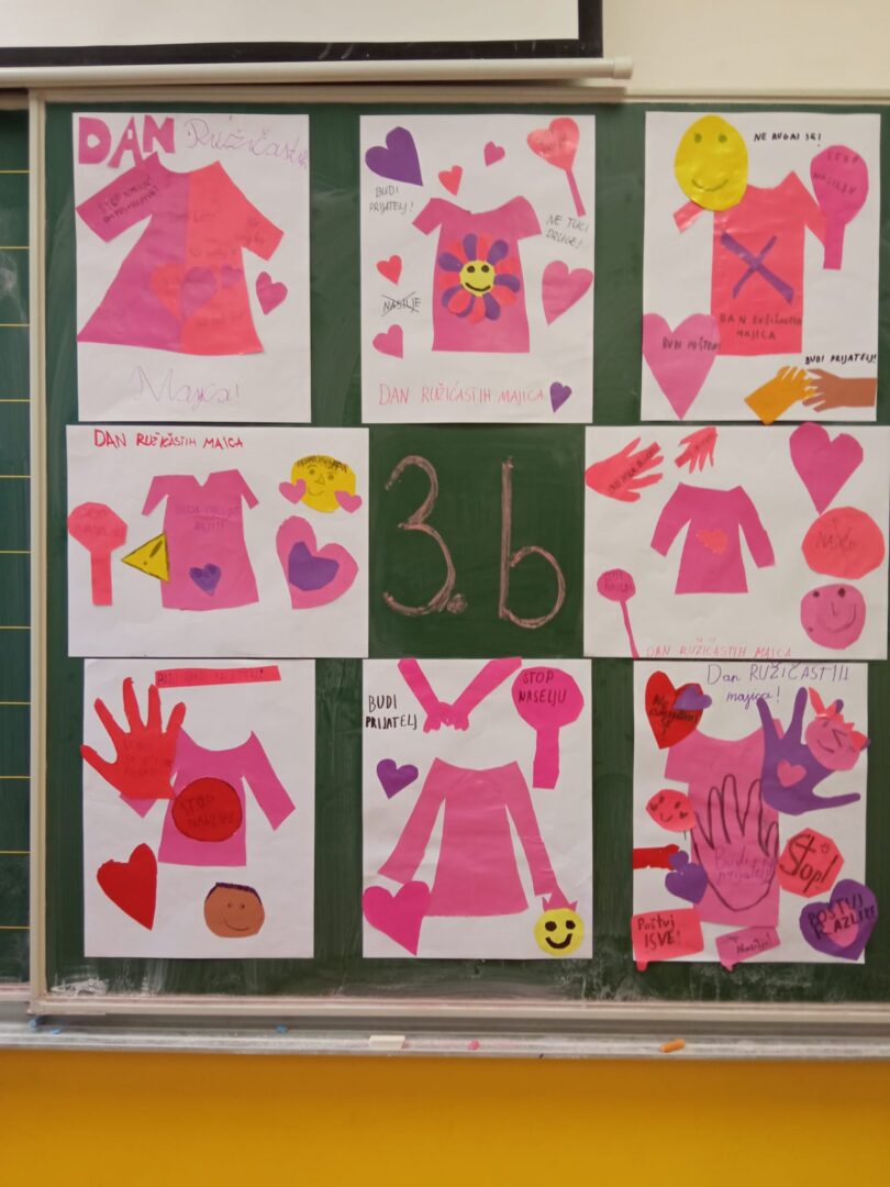 Učenici naše škole i ove su godine obilježili Dan ružičastih majica, međunarodni dan posvećen osvještavanju i suzbijanju vršnjačkog nasilja. Ovaj se dan obilježava posljednje srijede u veljači, a nastao je u Kanadi kao reakcija na slučaj dječaka koji je bio izložen ismijavanju jer je u školu došao u ružičastoj majici. Učenici njegove škole tada su masovno obukli ružičaste majice i pokrenuli globalni pokret protiv nasilja.