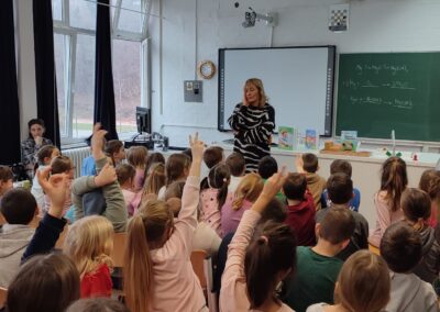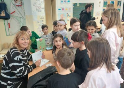 Učenici su s velikim zanimanjem sudjelovali u razgovoru te postavljali pitanja o nastanku njezinih djela, likovima i procesu pisanja. Sanja Pilić predstavila je svoja najpoznatija djela te govorila o važnosti čitanja, mašte i svakodnevnih situacija koje je inspiriraju.