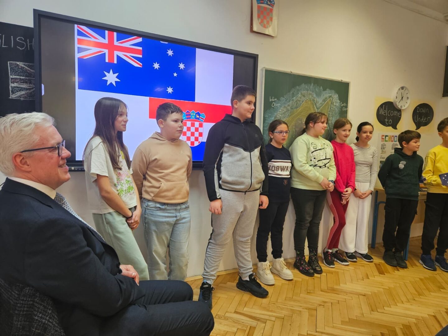 U sklopu projekta izvannastavne aktivnosti “Različiti svjetovi”, u srijedu 28. siječnja imali smo iznimnu čast ugostiti veleposlanika Australije, gospodina Richarda Rodgersa i njegovu suradnicu Dijanu Grahovac koja je prvi razred završila baš u našoj školi.