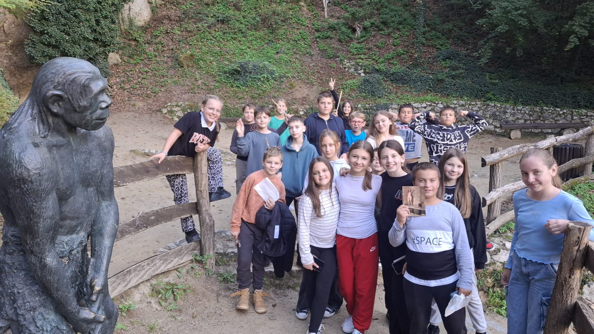 Prva postaja bila je Muzej krapinskih neandertalaca, gdje su učenici kroz razgled stalnog postava i multimedijalne prezentacije upoznali život prapovijesnog čovjeka, način njegovog prilagođavanja okolini, alate koje je koristio i okolnosti u kojima je pronađeno najpoznatije nalazište krapinskog pračovjeka na Hušnjakovu brdu.