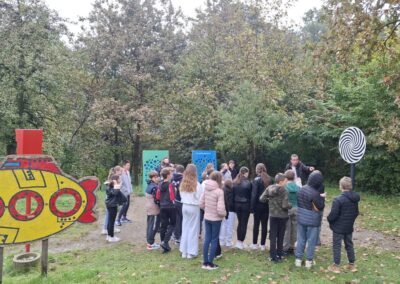 Nakon posjeta muzeju učenici su nastavili put prema Parku znanosti u Oroslavju, gdje su kroz različite interaktivne eksponate učili o prirodnim zakonitostima fizike, akustike i optike. Sudjelovali su u praktičnim demonstracijama te promatranjem i eksperimentiranjem otkrivali kako znanstvene pojave djeluju u svakodnevnom životu.